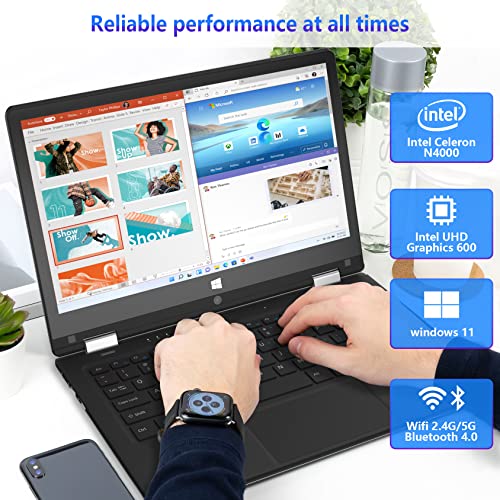 - 【Meet Various Daily Needs】This Windows 11 laptop is with USB 3.0*2, Microphone*1, Speaker*4, Camera, Micro-HDMI port*1, high-speed M.2*1, fast charging DC port*1, 3.5mm headphone jack*1, and TF card slot*1. Supports Bluetooth 4.2 and 2.4G/5G dual-band WIFI. Meet various using needs in your daily life.
