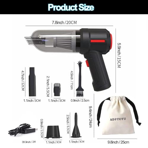 - 【3-In-1 Multifunctional Idea】ADPTOYU small hand held vacuum cleaner is equipped with a variety of accessories that can meet the blowing, vacuuming and pumping a variety of scenarios for use. Not only can you clean hard-to-clean crevices such as computer keyboards and mainframes, but you can also as a vacuum sealer vacuum pump to use.