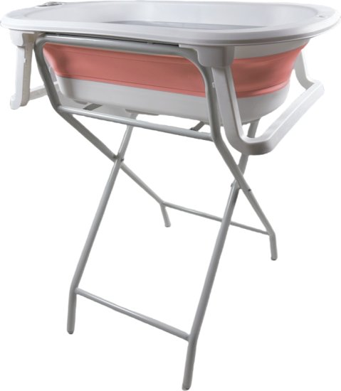 מִפרָט: אמבטיה מתקפלת לתינוק + מעמד + צינור ניקוז מבית Yamayo – צבע ורוד/לבן