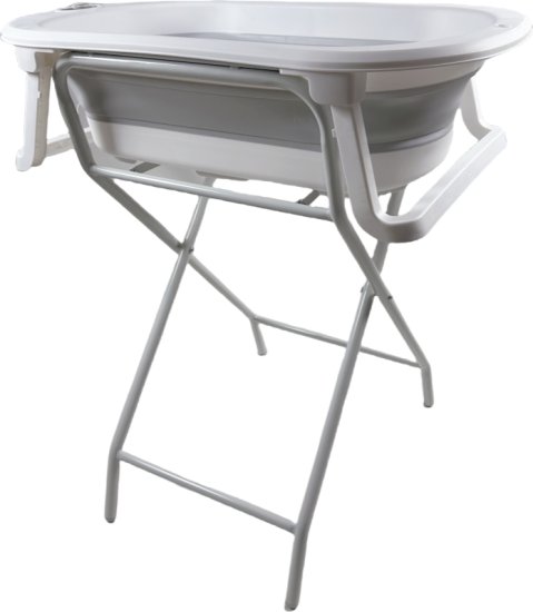 מִפרָט: אמבטיה מתקפלת לתינוק + מעמד + צינור ניקוז מבית Yamayo – צבע אפור/לבן