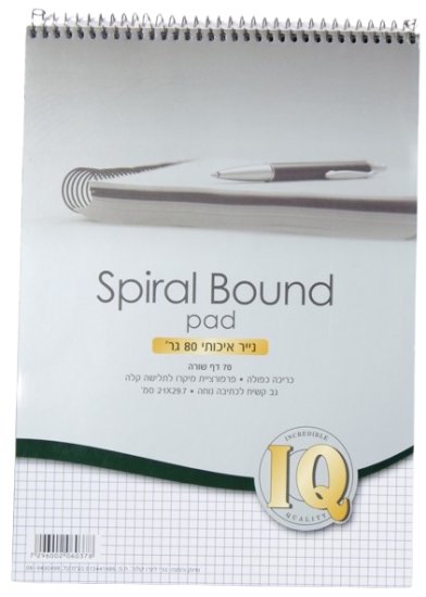 בלוק כתיבה A4 מבית IQ. בלוק כתיבה איכותי ונוח לשימוש, עם גב מקרטון קשיח. הבלוק בעל דפי חשבון בגודל A4 המסייעים לשמור על כתיבה מסודרת ומקצועית, ומספקים שטח כתיבה מרווח ושימושי. הבלוק בעל ספירלה עליונה המאפשרת שימוש קל ביד ימין או שמאל, מבלי להפריע לזרימת העבודה.