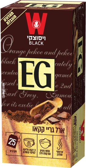 מִפרָט: ויסוצקי – תה שחור ארל גריי בטעם קקאו – סך הכל 25 שקיקים