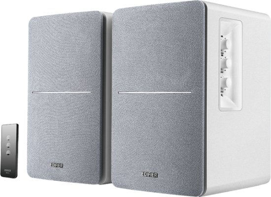 רמקולי מדף Bluetooth עוצמתיים מבית Edifier בעיצוב קלאסי עם בס עוצמתי ושמע מקצועי, כוללים שלט אלחוטי ומתחברים דרך Bluetooth