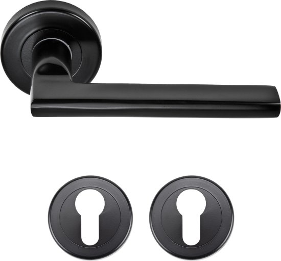 ידיות דלת פנים דגם גרנדה + זוג רוזטות צילינדר מבית Yale – צבע שחור