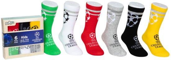 מארז 6 זוגות גרביים מעוצבים לילדים Pulliez דגם Champions League  – מידת One Size שמתאימה למידות 24-34