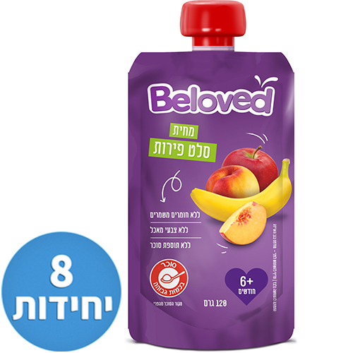 מִפרָט: מציאון ועודפים – 8 מחיות סקוויז בטעם סלט פירות לגילאי 6+ חודשים Beloved – במשקל 120 גרם כל אחת