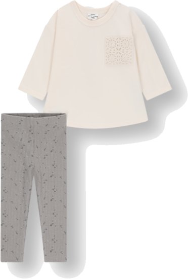 סט חולצה וטייץ מבד ריב לילדים 4-5 Minene – שמנת