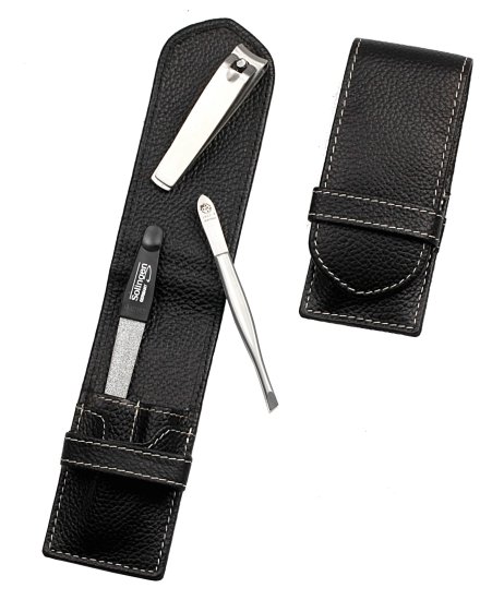 סט מניקור פדיקור 3 חלקים בגימור מט סדרת Sunshine מבית HK – נרתיק עור שחור