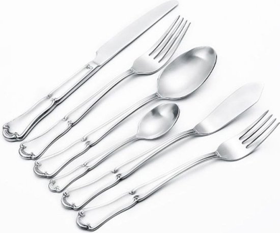 מִפרָט: סט סכו"ם 36 חלקים – נירוסטה עם עיטורים דגם Belle מבית Food Appeal – כסוף מראה