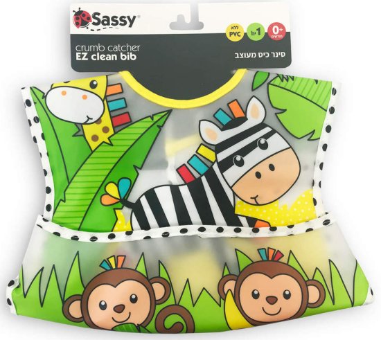 מִפרָט: סינר האכלה מעוצב עם כיס Sassy – זברה