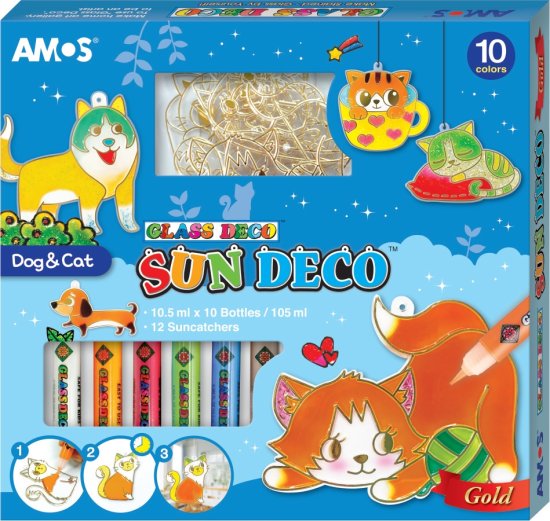 מִפרָט: ערכת יצירה צבעי חלון ולוכדי שמש מבית AMOS – חתולים וכלבים