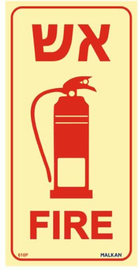 מִפרָט: שלט פולט אור אש FIRE + מטף מבית Malkan – גודל 10×20 ס"מ