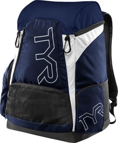 תיק שחייה 45 ליטר דגם Alliance מבית TYR – צבע כחול Navy / לבן