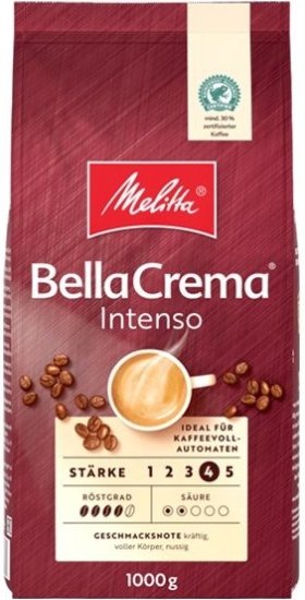 תערובת פולי קפה 1 ק"ג Melitta Bella Crema Intenso, תערובת פולי קפה בעלי טעם נועז ועוצמתי, נוצרו עבור חובבי קפה שמשתוקקים לחליטה חזקה ובעלת גוף מלא, מציעים חוויית טעם יוצאת דופן. בלה קרמה אינטנסו, המיוצר מתערובת של פולי ערביקה ורובוסטה איכותיים, מספק כוס עשירה וארומטית עם קרמה קטיפתית.
