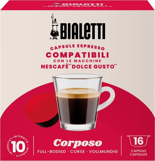 מִפרָט: 16 קפסולות Bialetti Corposo – תואמות למכונות קפה Dolce Gusto