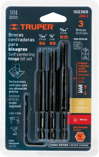 מִפרָט: 3 מקדחים למתכת ועץ לקידוח צירים Truper Multi Purpose