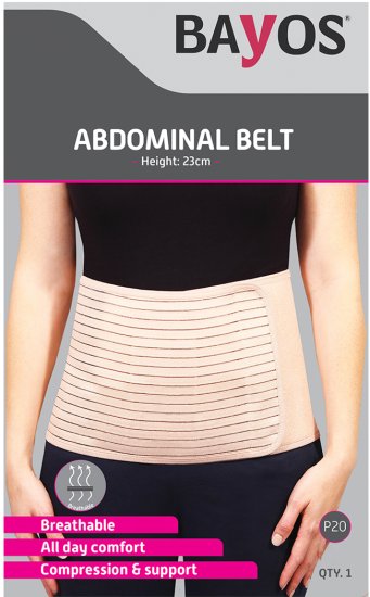 חגורת בטן אוורירית 23 ס"מ מבית Bayos. חגורת בטן אוורירית ואלסטית המספקת הקלה לאחר ניתוחים בטניים ולאחר לידה.