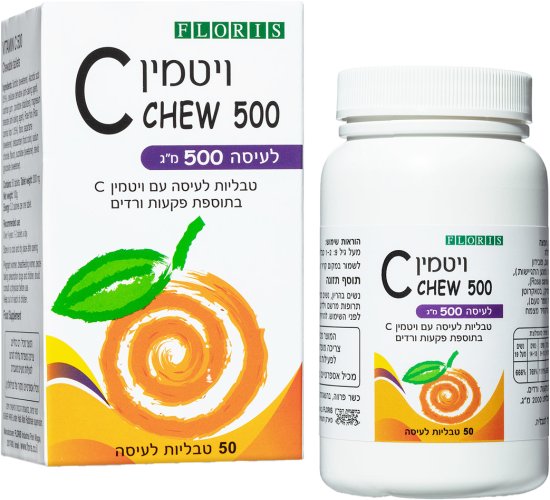 מִפרָט: Floris – ויטמין C 500 טבליות לעיסה – סך הכל 50 טבליות