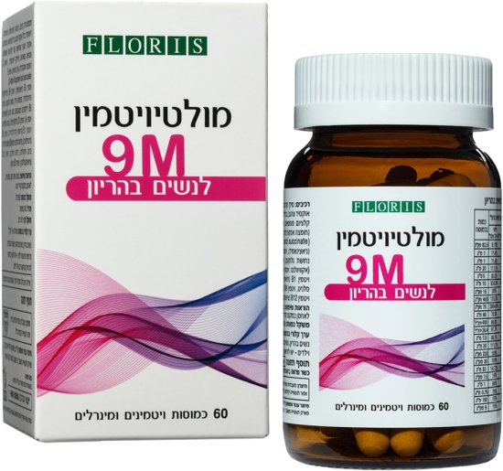 מולטי ויטמין 9M לנשים בהריון מבית Floris. מולטיויטמין לנשים בהריון הינו קומפלקס יעודי לתקופת ההריון וההנקה – מכיל ויטמינים ומינראלים חיוניים במינונים אופטימלים להשלמה תזונתית יומיומית מקיפה, ובהתאם להמלצות משרד הבריאות.